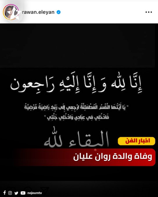 اعلنت نجة ارب ايدول روان عليان عبر حسابها الرسمي على موقع “إنستقرام” عن وفاة والدتها. وذلك اليوم الموافق 30/7/2023 وذلك بعد صراع منع المرض حيث نشرت ستوري مكتوب فيه انا لله وانا اليه راجعون ..