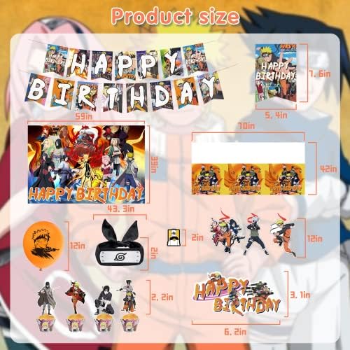 117pcs Anime Birthday Decorations 108Pcs Anime Party Supplies Include Balloons, Birthday Banner, backdrop, Headband, Cake Topper, Cupcake Topper, Hanging Swirl and Stickers for Kids and Adults