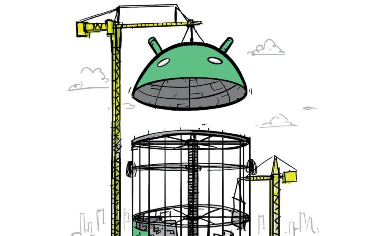 Spread of Androids on yellow backgroundSpread of Androids on yellow background
