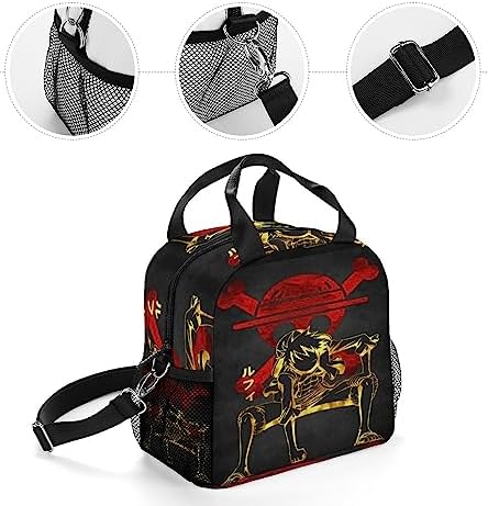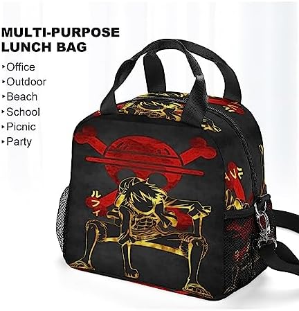 Anime Lunch Bag- Large Portable Cooler Lunch Box for Office Work School Picnic Beach Workout – Reusable Freezable Tote Lunch Bag Organizer with Adjustable Shoulder Strap for Women Men Adult Kids