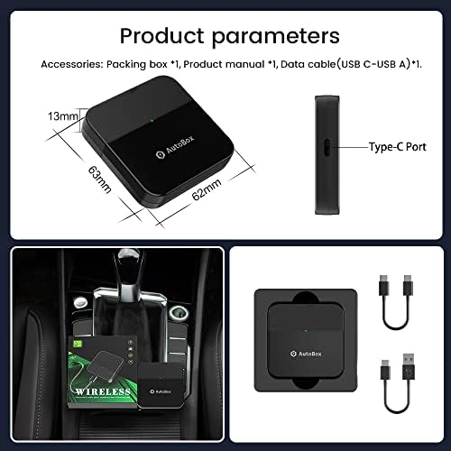 Autobox Apple CarPlay Wireless Adapter, Speed Fastest, Auto Connect, Plug & Play, Super Easy Setup,for OEM Wired CarPlay Cars Model Year After 2016, for iPhone