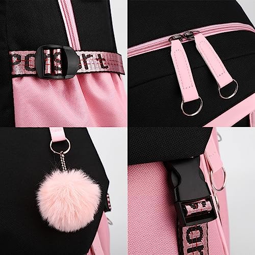 Feature:Unique and colorful design ,lovely Plush ball trinkets made this backpack more attractive.Large Capacity could fit for 16inch laptop.