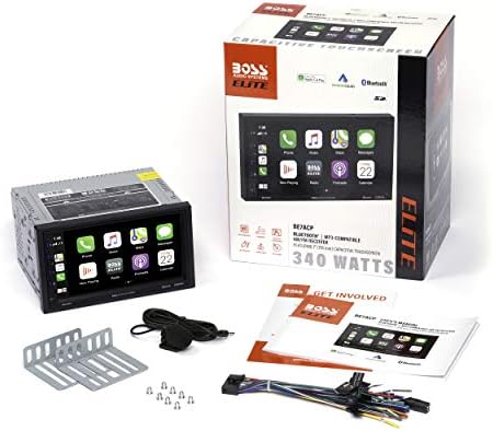 BOSS Audio Systems Elite BE7ACP Car Multimedia Player with Apple CarPlay Android Auto – 7 Inch LCD Capacitive Touchscreen, Double Din, Bluetooth, No CD/DVD Player, USB, SD, AV In, AM/FM Radio