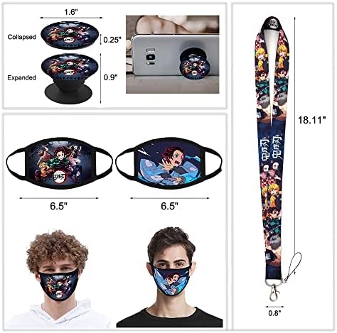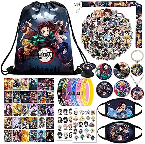 Demon Slayer Anime Merch Gift Set, Including Drawstring Backpack, Face-masks, Stickers, Bracelets, Lanyard, Phone Ring Holder, Keychain, Necklace, Button Pins, Lomo Cards, Tattoo Stickers