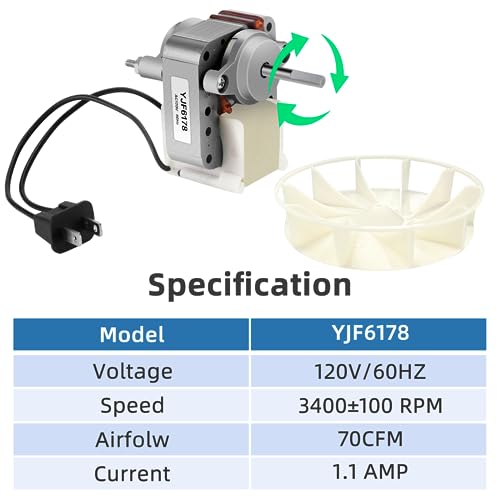 Upgraded YJF6178 Bathroom Vent Exhaust Fan Motor 70CFM 60HZ 120V 1.1A Replacement for Model N678 N671 N679 N655 671 671A 679 658 657 655 Bath Fans