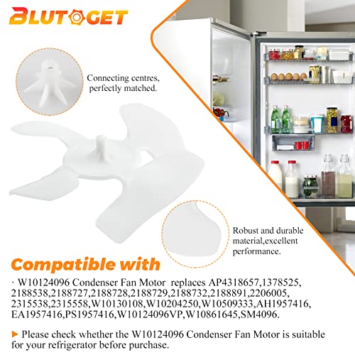 √√【365 DAYS GUARANTEE】: Risk-free shopping,Blutoget W10124096 whirlpool condenser motor for refrigerator is made of premium quality material, supports 365 DAYS return and exchange. We promise to ensure your absolute satisfaction with every purchase. If you have any quality problem about this W10124096 fan for refrigerator whirlpool during warranty period, please contact customer service in time. We will try our best to solve the problem. Customer satisfaction is our tireless pursuit.