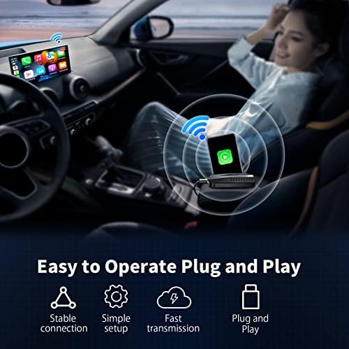【 Fast Transmission and Automatic connection 】 This Carplay adapter supports 2.4G and 5G dual channel wireless networks. Built in 4-core 64 bit Qualcomm SDM6125 processor. Can provide the fastest and most stable carplay experience. The first setup will be completed within a few seconds. When the car engine starts, the wireless Android auto adapter will automatically and quickly connect to the phone. The wireless carplay adapter is small and can be easily hidden, making mobility more efficient.